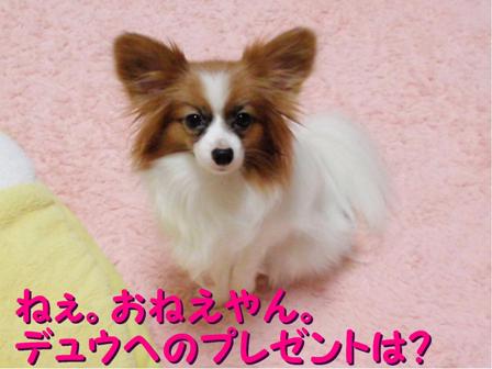 デュウちゃんにそれあげるから、その格好でブロ友さんのところに今年お世話になったご挨拶に行ってきてよ