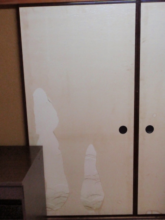哀れなふすま戸。下のふすま紙が見えてしまいました。