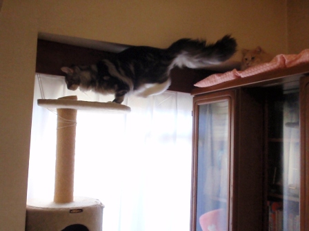 ちゃんとタワーから飛び乗りました