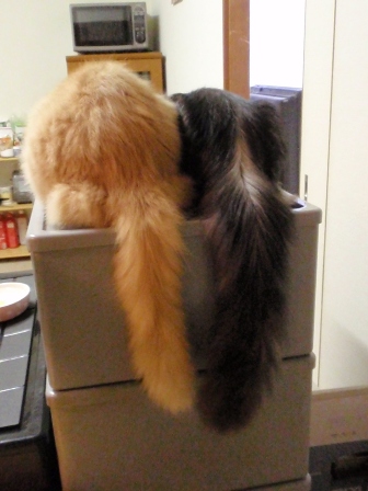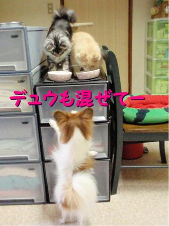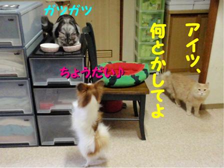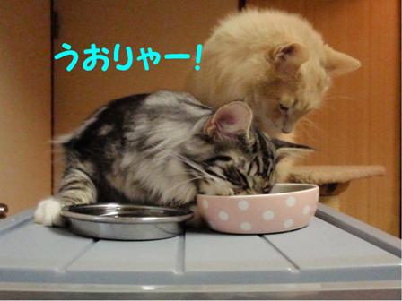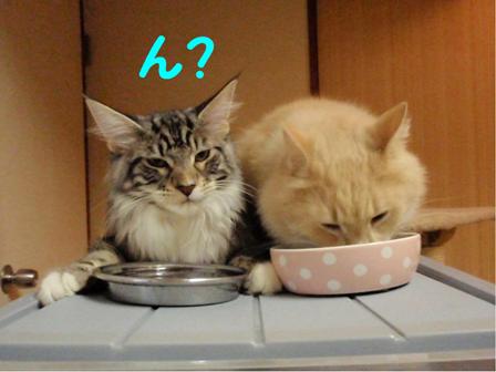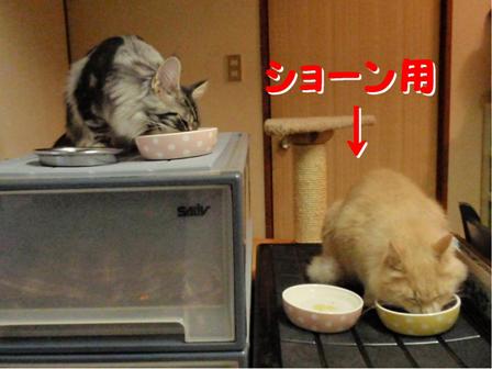 前から見てみると、ネイチくんはカリカリを食べ、ショーンはお水を飲んでいます。何だかふたり、仲良さそうじゃない~