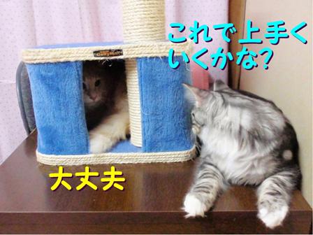 ショーンが中の支えの棒にじゃれ付いて外してしまいました。