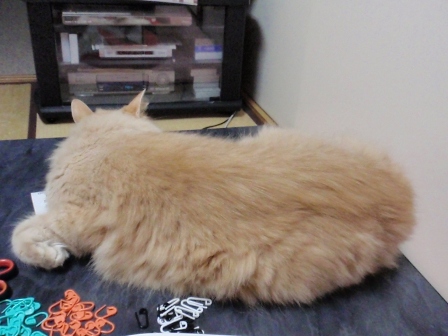 編み物してるテーブルでいたずらしないでいられるのもネイチくんだけ。