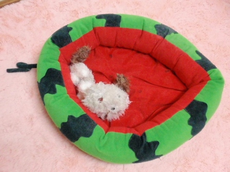 akane 『 あっ!こんなところにダックスくんが!!早くしないとスイカベッド占領されちゃうよー。 』