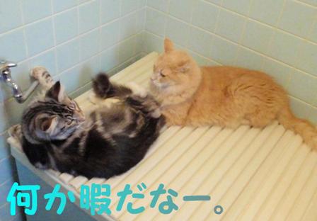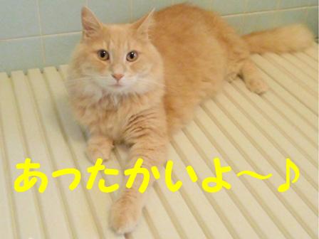 じんわり温かいのがいいみたい。人の入浴中も乗ったまま。