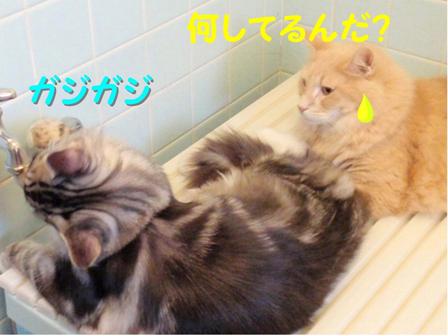 イマイチお風呂場での過ごし方が分かっていない様子。