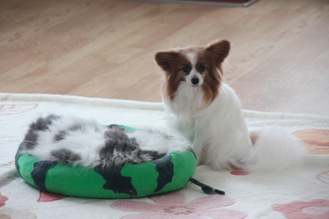 猫用だけど小型犬のデュウちゃんにもぴったりサイズ。