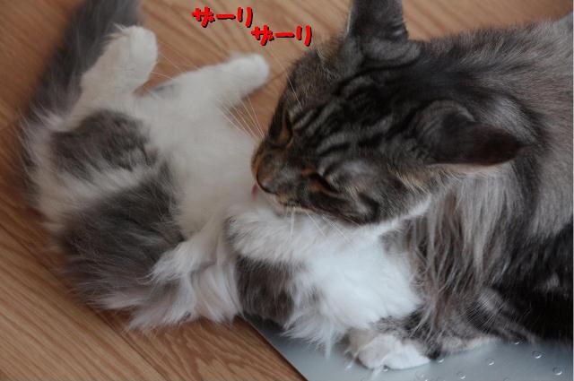 ショーンくんがパイパーをべろべろしてキレイにしてあげてるっ