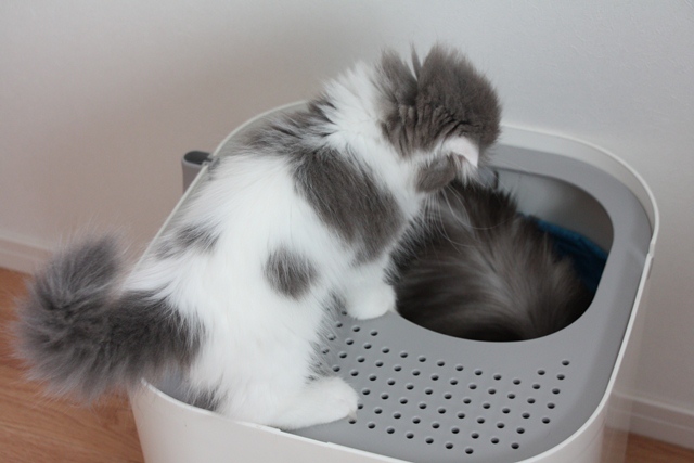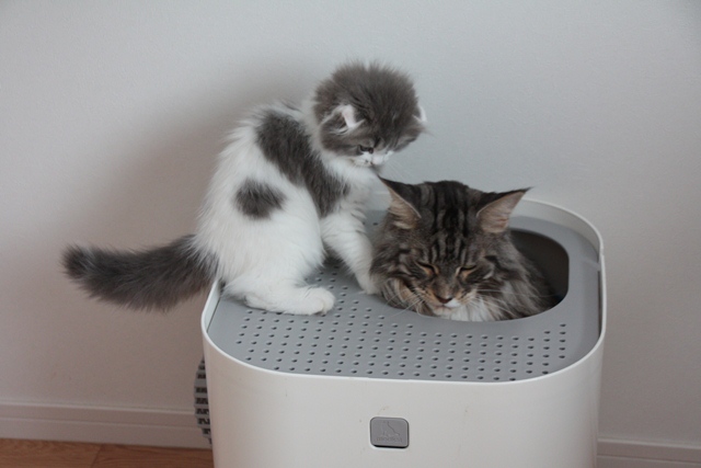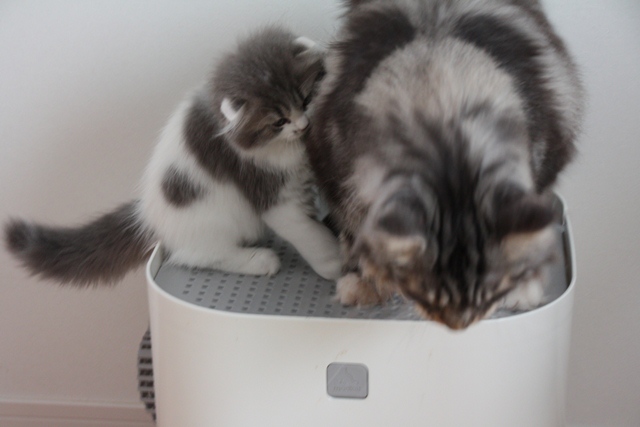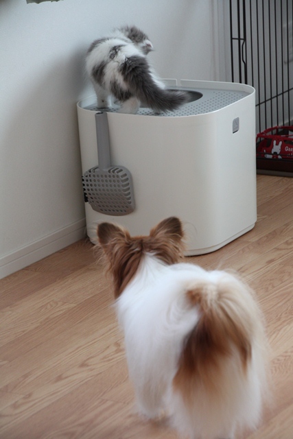 トイレ中のひとの背に手を載せたりして興味津々。