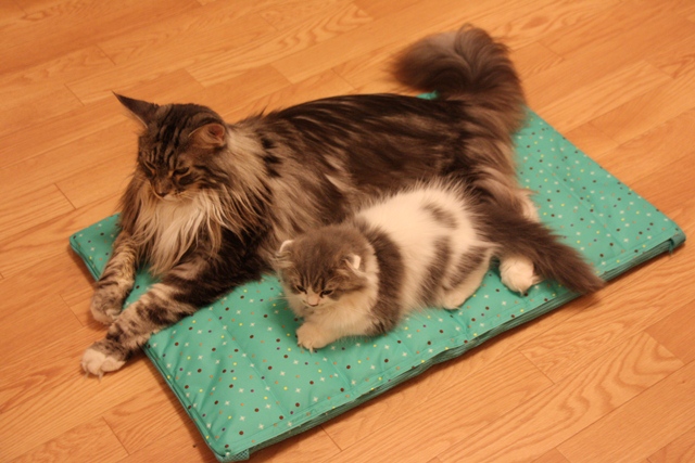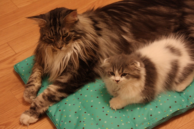 ちっこいのとおっきのがもふもふ丸出しで仲良くお昼寝