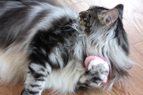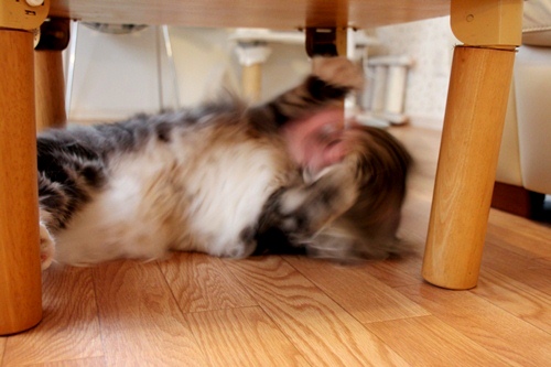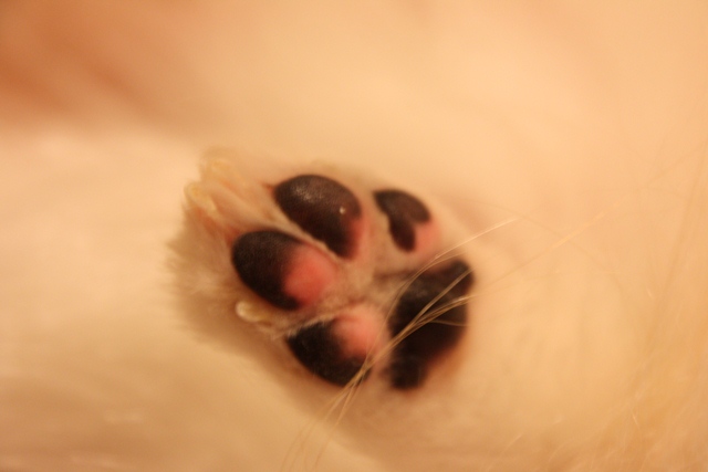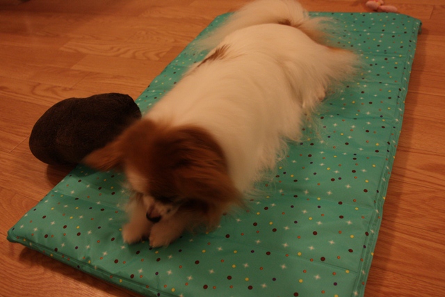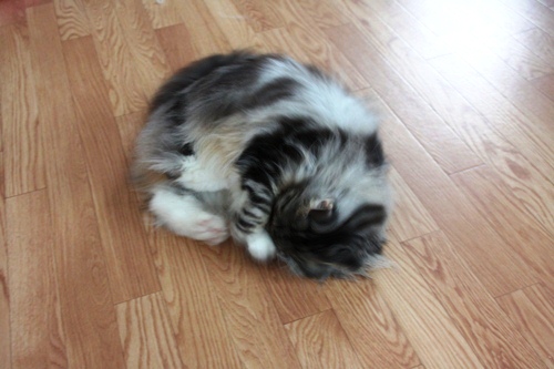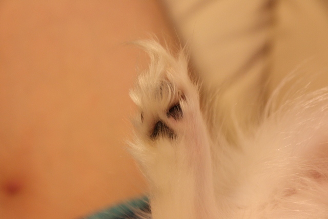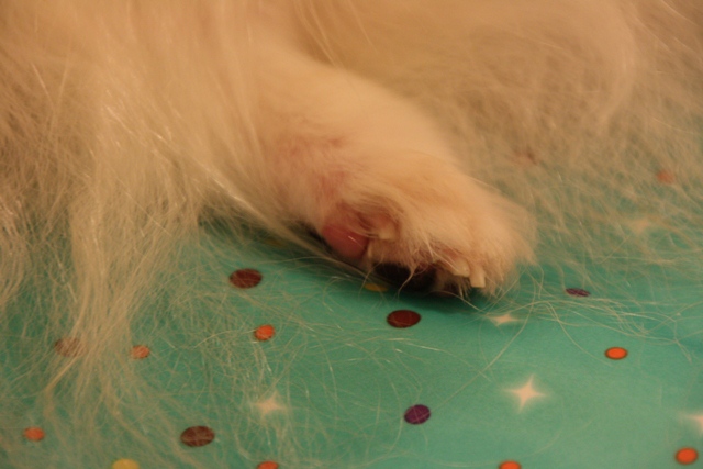 床で滑らないように肉球のハミ毛を切らねばならなくなったデュウちゃん