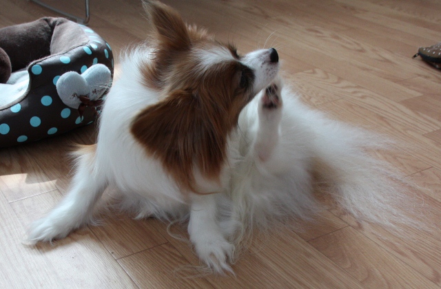 後ろの右足のお皿の部分が関節の窪みから外れてしまうというものです。