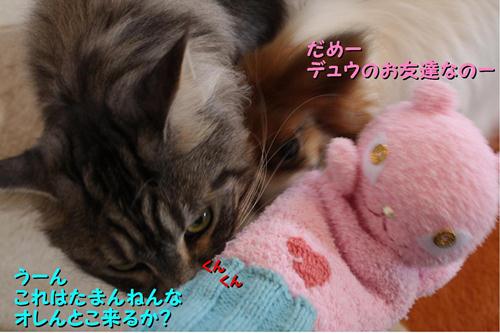 アヤシイ雰囲気を感じてショーンくんとパペちゃんの間に割り込むデュウちゃん。