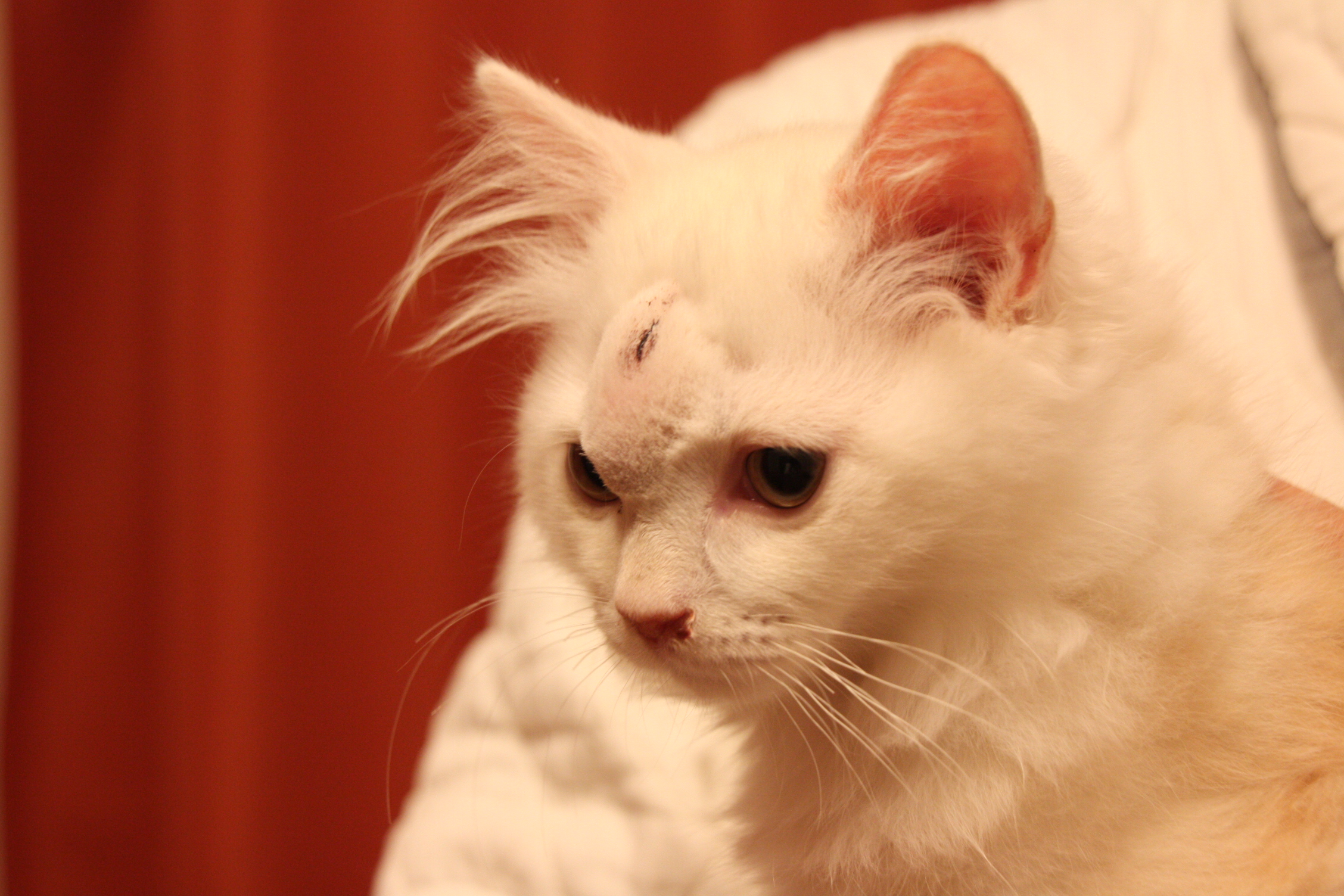 おでこに溜まった膿を切開して出した後。