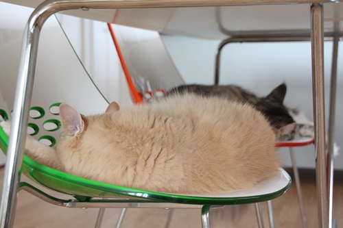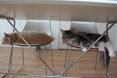 食卓の椅子が二つとも埋まってる~