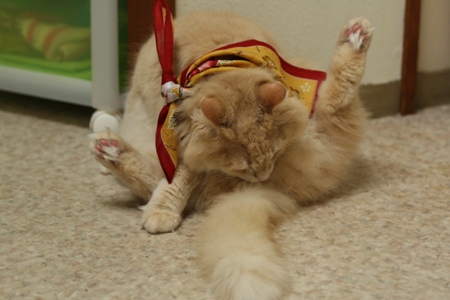 (デュウちゃんがしているのはおねえやんの手作りバンダナです。)