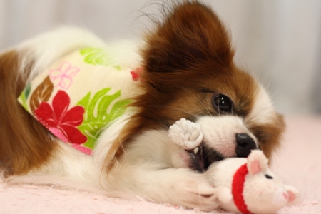 心の広いChikaぽんさんはわんこのデュウちゃんも分け隔てることなくアロハ隊に入れてくださったのですよ~