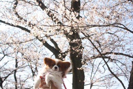 満開の桜の木とデュウちゃん
