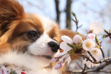 桜を愛でるデュウちゃん。