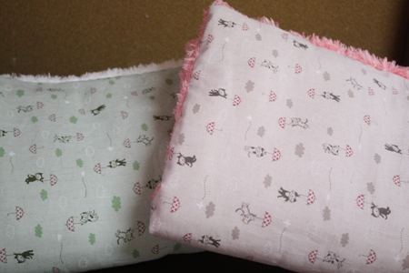 季節に関係なく使えるように、片面は綿のさらっとした生地、もう片面はもこもこの生地にしました。