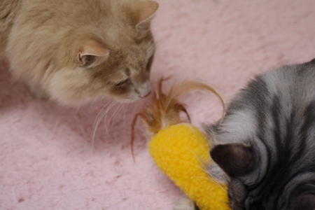猫達がすごく気に入っていたのにデュウちゃんがぼろぼろにしちゃって・・・。