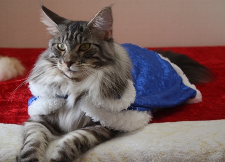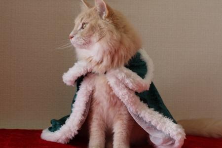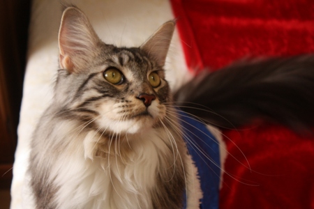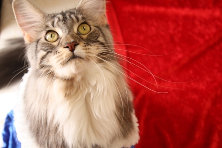 くっきりアイラインで可愛らしくもメインクーンらしいキリリとした顔立ち