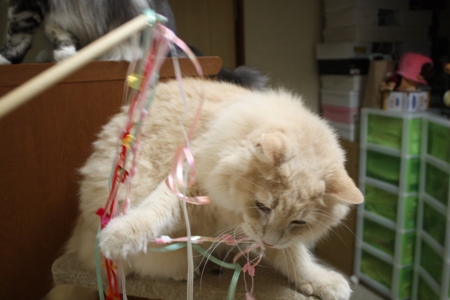 ②普段はあまりおもちゃに反応しないネイチくんがよく遊ぶ。