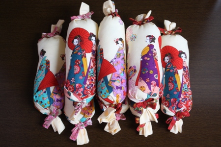 キャンディーをイメージして両端はリボンでとめてみました