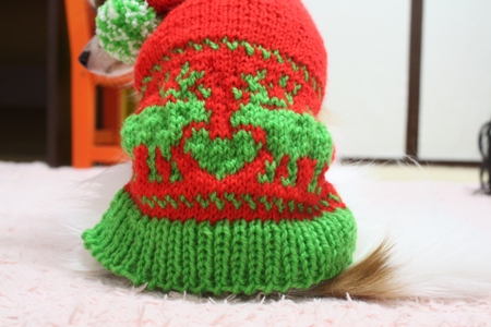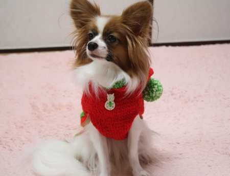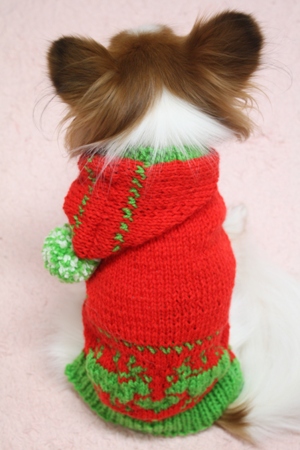 デュウちゃんにクリスマスカラーのニットを作ってみました