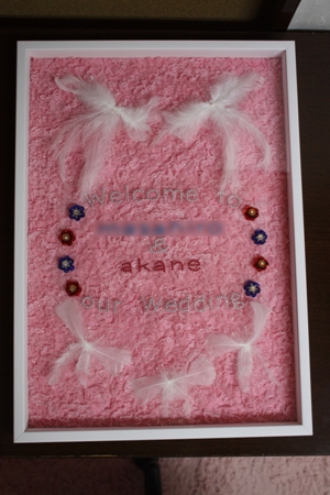 写真立ては私の結婚のお祝いにアイロンビーズで作ってくださいました。